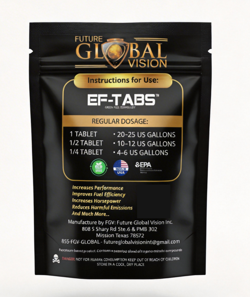 Discover Econo Fuel Tabs (EF-TABS) a simple, proven fuel catalyst tablet that drops right into your (gasoline or diesel ) fuel tank. By enhancing combustion efficiency, EF-TABS help cut dangerous smog-forming emissions, restore lost power and responsiveness to your engine, and put real money back in your pocket with better miles per gallon on every fill-up.